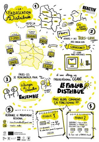 Reactiv’Maker est un collectif de fablabs impulsé en 2022 par la Compagniedes tiers-lieux via son cercle thématique de la fabrication distribuée. Les fablabs,dits aussi “makerspaces”, sont des lieux de production utilisant les outils du numérique. Reactiv’Maker regroupe six tiers-lieux partenaires répartis dans les Hauts-de-France : La Station (Saint-Omer), le Louvre Lens Vallée (Lens), La Machinerie (Amiens), La Condition Publique (Roubaix) Lidd (ex-Techshop Lille) et la FabNum (Marcq-en-Baroeul). Ces structures indépendantes portent le projet commun de réinventer le modèle de la production locale et de sa diffusion, et de relocaliser la production de biens et services en réponse à des besoins de leurs territoires. Leur objectif est de mutualiser leurs compétences ainsi que leurs ressources humaines et matérielles. La Compagnie des tiers-lieux, via le dispositif européen Feder, leur apporte un soutien pour coordonner et mettre en œuvre leurs actions. Pour les contacter ? C'est ici > reactivmaker@gmail.com