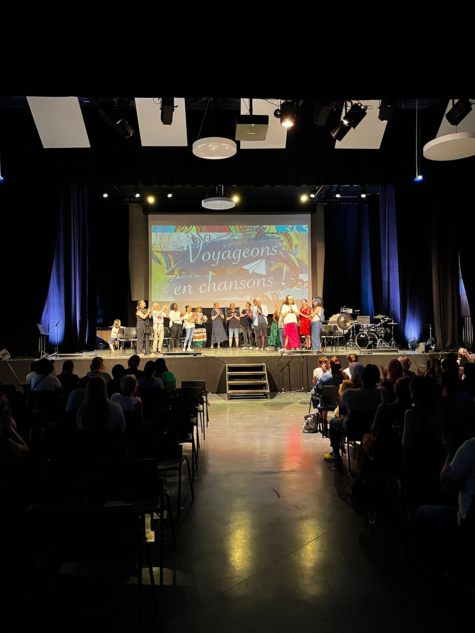 Tout a commencé par le partage et la découverte de chansons en lien avec un souvenir ou le pays d’origine des stagiaires. Nous avons alors voyagé en Ukraine, en Arménie, en Afghanistan, au Portugal, en Chine, à Bali et en France. À travers des ateliers d’écriture avec Damien de la Compagnie 2L, ils ont écrit sur leurs liens avec ces chansons puis ont imaginé un poème. Dans un second temps avec les 3 artistes de la Compagnie 2L Anne, Guick et Damien, ils ont travaillé l’interprétation puis enregistré leur chanson. Pour finir ce projet de création d’un livre de chansons, Thomas Fiéffé, plasticien, les a accompagnés sur la réalisation des illustrations. « Voyageons en chansons » est le fruit du travail collectif d’un groupe de stagiaires de l’APP de Marquette (FCP secteur Atelier de Préfo) participant au dispositif « Culture en MNO » porté par le FCP. Ce groupe d’apprenants est inscrit dans le programme de formation S’engager Vers l’emploi financé par la région des Hauts de France. Ce projet a été rendu possible grâce au financement de la DRAC via l’Appel à Projet Culture et langue Française.