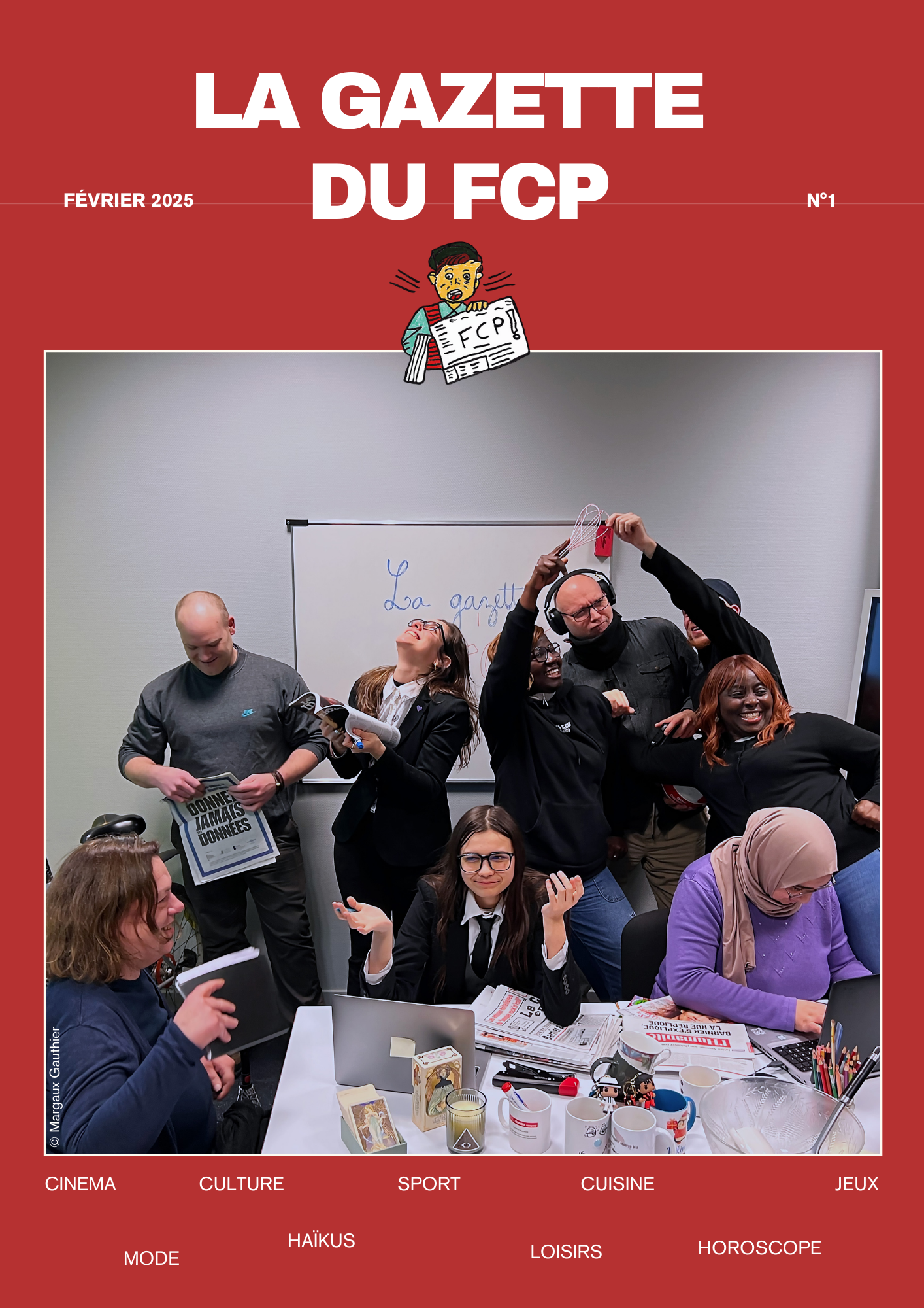 Depuis septembre 2024, Amandine, Assita, Estefania, Fatima Zohra, Florence, Franck, Kévin, Laure, Makhissa et Nicolas (stagiaires en formation sur le dispositif « S’Engager Vers l’Emploi » et l’action d’accompagnement Dynameet) se réunissent chaque semaine pour travailler à l’élaboration d’un journal. Accompagné·e·s de Corinne (Coordinatrice Culture), Léa (médiatrice culturelle) et Margaux (formatrice FLE), ils/elles se sont saisi·e·s de toutes les étapes de la création d’un magazine.Nous avons choisi que ce magazine leur ressemble. En effet, le contenu du journal correspond à leurs centres d'intérêt et à leurs envies. Ce premier numéro de « La Gazette du FCP » est à la hauteur de leur investissement. Et nous espérons que vous aurez autant d’enthousiasme à le découvrir que nous en avons eu à les accompagner tout au long du projet.